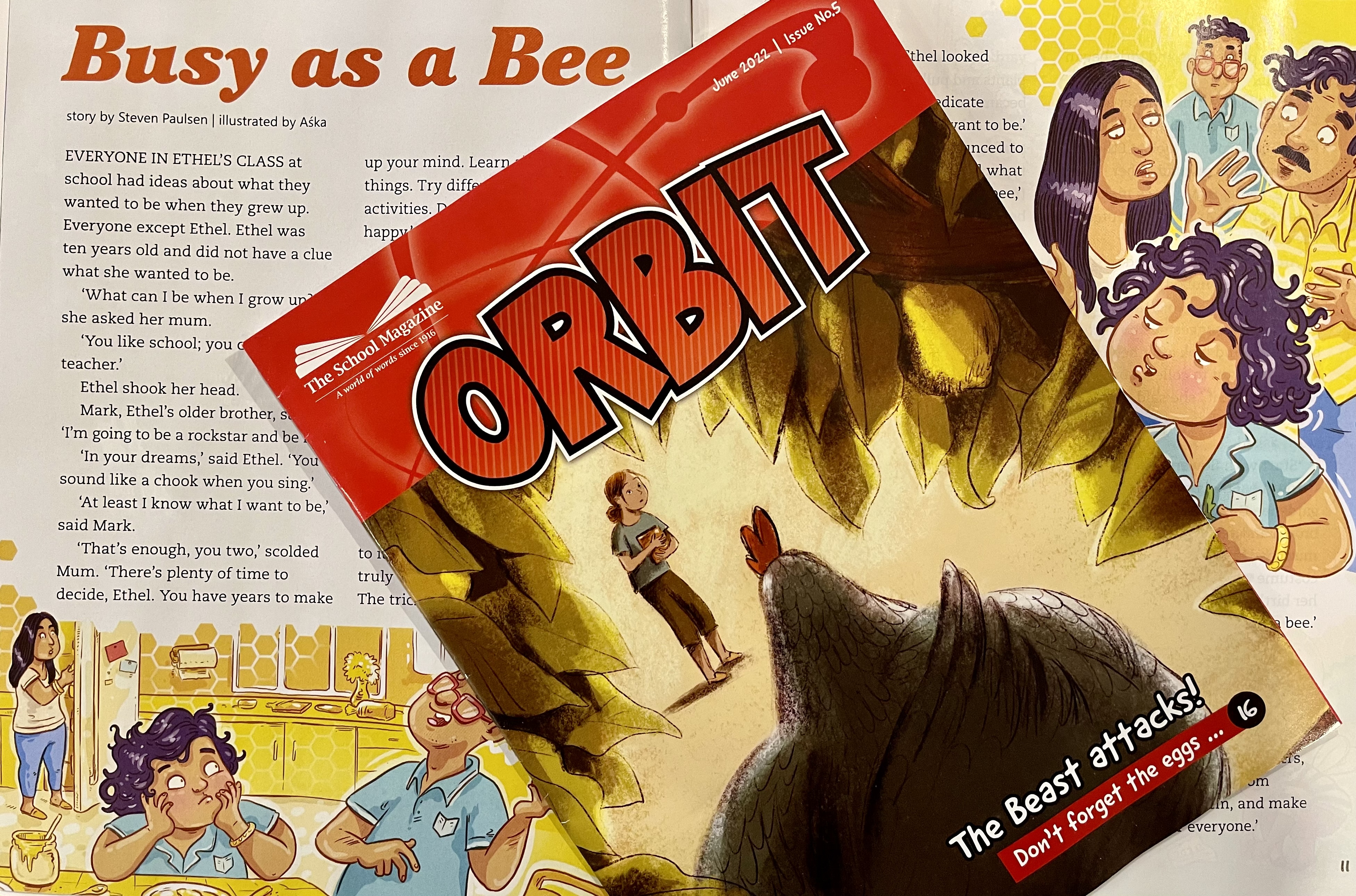 The School Magazine – “Australia’s most-loved and longest-running literary publication for children” – has published my short story “Busy as a Bee” in Orbit magazine (Issue 5, June, 2022), aimed at readers aged 10—11 years. It is enhanced with fantastic artwork by Aśka, a Perth based visual storyteller who specialises in comics, graphic novels and picture books.